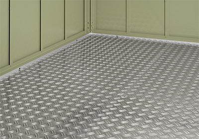Savršeno prilagođen spremištu za alat: Pod od aluminijskog rebrastog lima dostupan je kao opcija. Tako pod neće hrđati i lako se čisti.