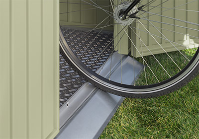 Rampa za prag u unutrašnjosti spremišta za alat omogućava praktično guranje uređaja unutra ili van.