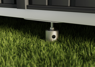 Temeljem koji se pričvršćuje vijcima svoje spremište za alat možete sigurno i stabilno postaviti na neravnu podlogu, bez da se morate brinuti o kompliciranom betonskom temelju. Takav temelj omogućuje višestruku montažu i demontažu. Temelj koji se pričvršćuje vijcima može opteretiti podlogu do150 kg/m² te je dostupan za sve modele spremišta za alat s jednoslivnim i dvoslivnim krovom. Za lakšu montažu pribor za zavrtanje standardno je uključen u paket isporuke.